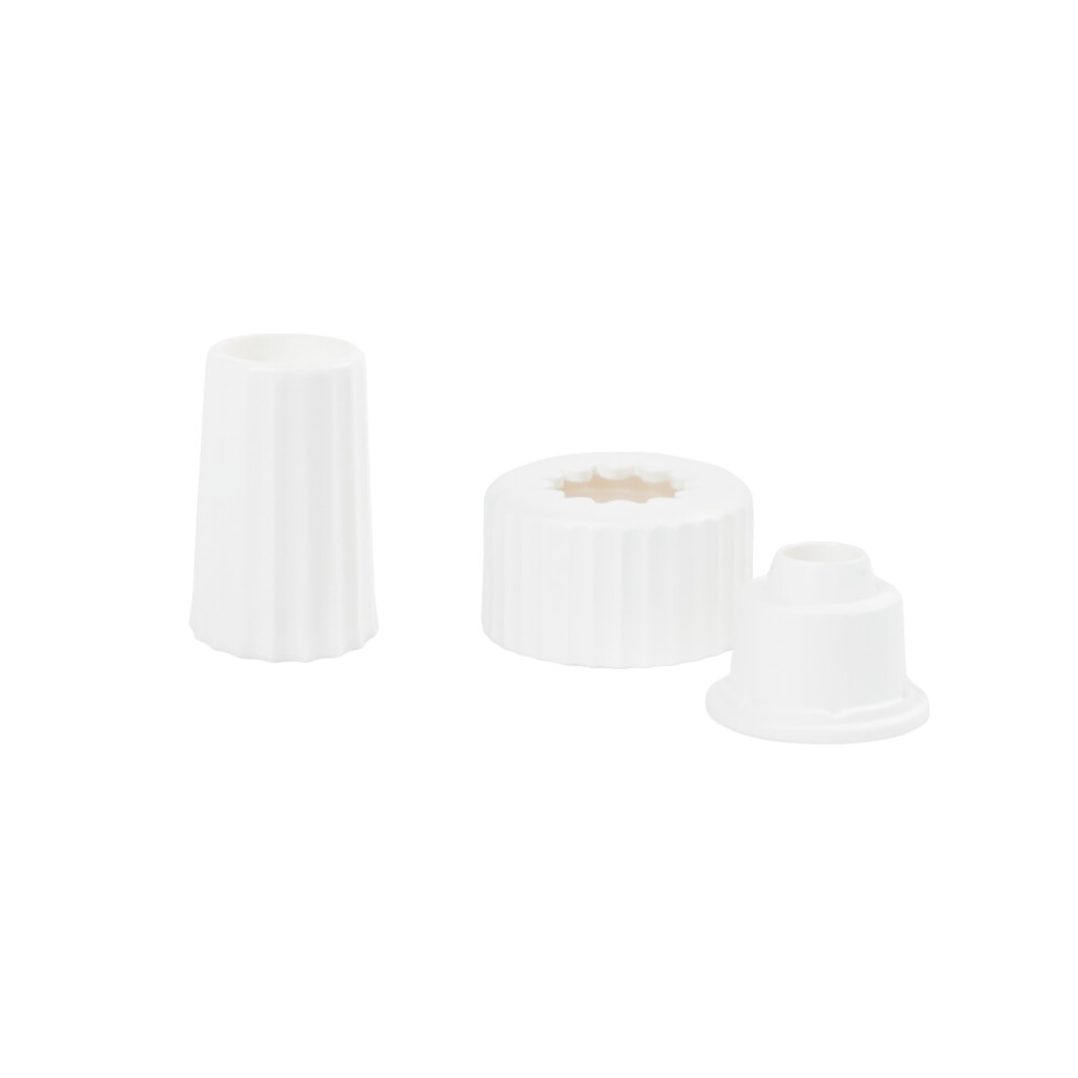 Złączka FagronLab™ łączy gwinty otworów do odmierzania dwóch tub FagronLab™. Jest bardzo użyteczna w procesie przygotowywania maści w większych partiach. Przenoszenie