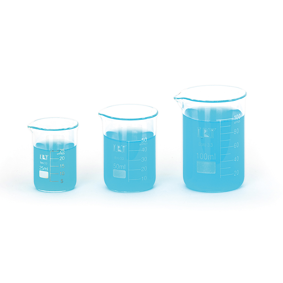 Zlewki wykonane są ze szkła borokrzemowego. Dostępne są w pojemnościach od 25ml do 1000ml.
